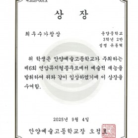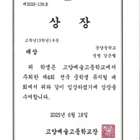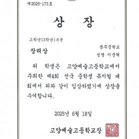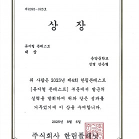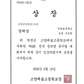 2025년 전국 중학생 뮤지컬대회 우수지도자상