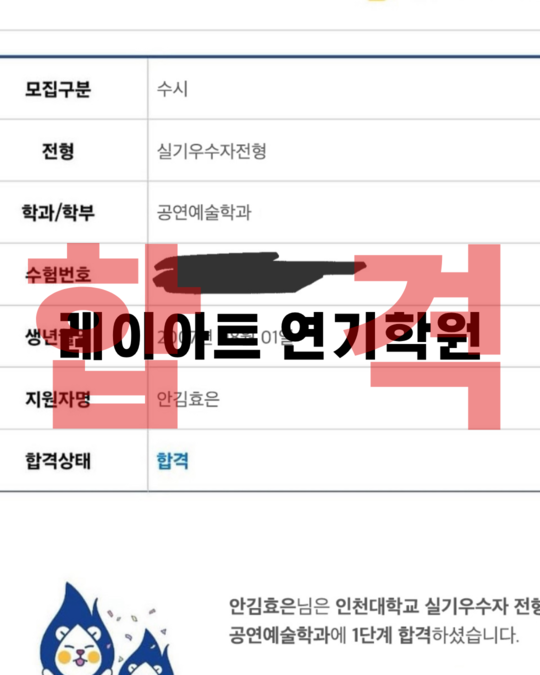 인천대학교 공연예술학과 1단계 합격 축하합니다.