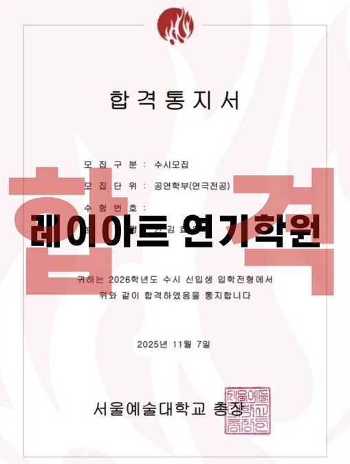 서울예술대학교 연극전공 최종합격 축하합니다.